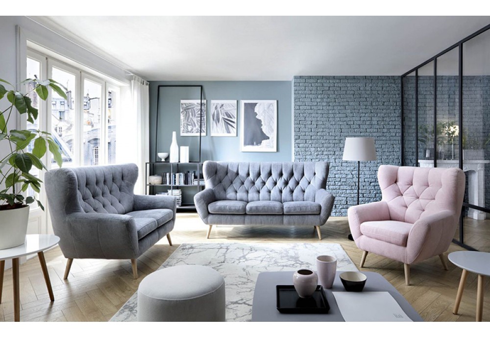 Сміливий і дуже модний. Рожеві та фіолетові відтінки диванів - це справжній виклик, який підійде тим, хто втомився від сірості стін і тьмяного дизайну.